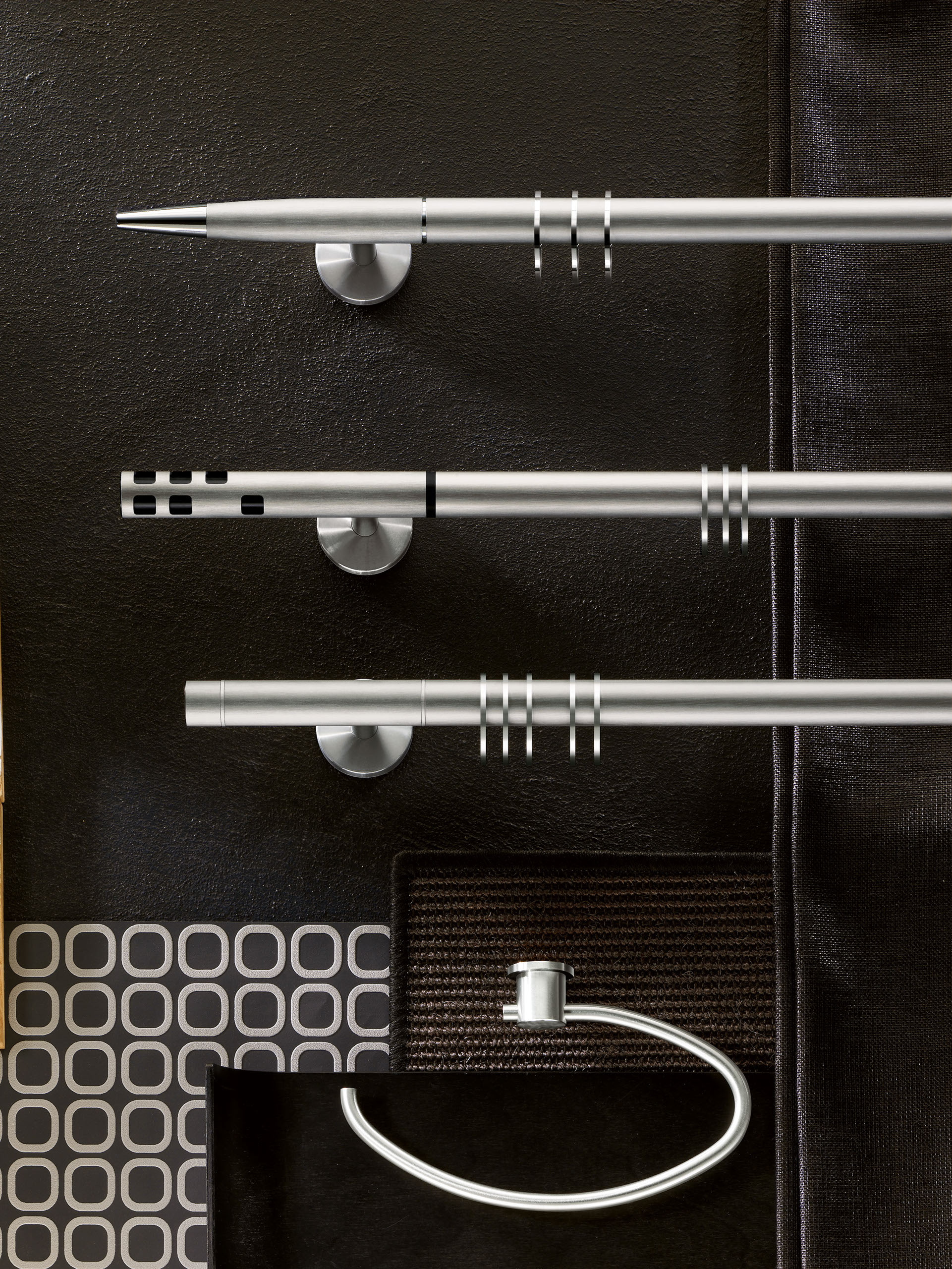 Ausgezeichnete Formen. Ausgewählte Materialien. Innovative Ideen und perfekte Ausführung sind Charakteristika im Produktprogramm. Diesem Anspruch folgen auch die Vorhangstangen. Jedes Detail ist durchdacht, jede Idee wird konsequent auf ihre Funktionalität überprüft und in maßgearbeitete Lösungen umgesetzt.
